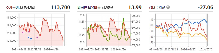 코스모신소재의 현재 주가는 113,700원으로, 전일 대비 700원이 하락했습니다. 주주 현황을 살펴보면, 코스모화학과 기타 7인이 총 29.28%의 지분을 보유하고 있습니다. 이 회사는 화학 분야에 속하며, 현재 장중 기준으로 주가는 113,700원입니다. 코스모신소재의 시가총액은 3조 5,274억 원이며, 발행된 주식 수는 32,510,756주입니다. 외국인 보유 비율은 13.99%이며, 장중 거래량은 142,212주에 달했습니다. 또한, 이 회사의 매출액은 1,221억 원에 이릅니다.